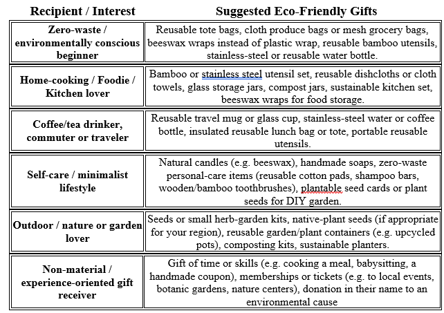 - Give greener gifts – choose eco-friendly presents whenever possible.