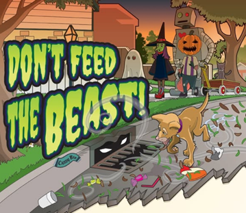 Remind your little ghouls and goblins to toss candy wrappers in the trash —not the street — to keep our stormwater clean and our waterways boo-tiful!