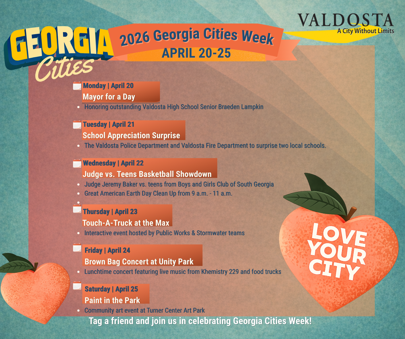 For more information on Georgia Cities Week events, please visit www.valdostacity.com or follow the City of Valdosta on social media.